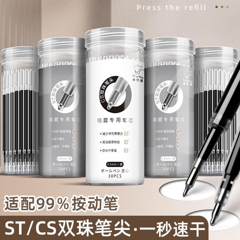 咔巴熊中性笔CS笔芯袋装替芯速干刷题笔替换芯ST按动可擦笔芯黑笔